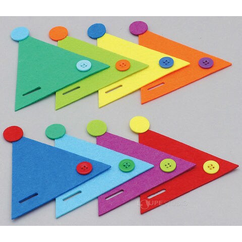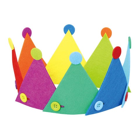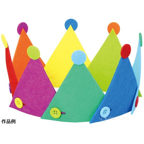 フェルトをボタンでとめてつなげてカラフルな王冠を作れる。
