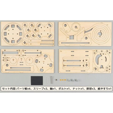 | セット内容 | パーツ板×4、スリーブ×3、軸×1、ボルト×1、ナット×1、鉄球×3、紙やすり×1 |