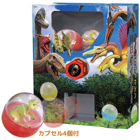 ガチャマシンを組み立てて、お家でガチャを楽しもう!カプセル4つと恐竜フィギュア4種付き!Φ65mmのカプセル推奨