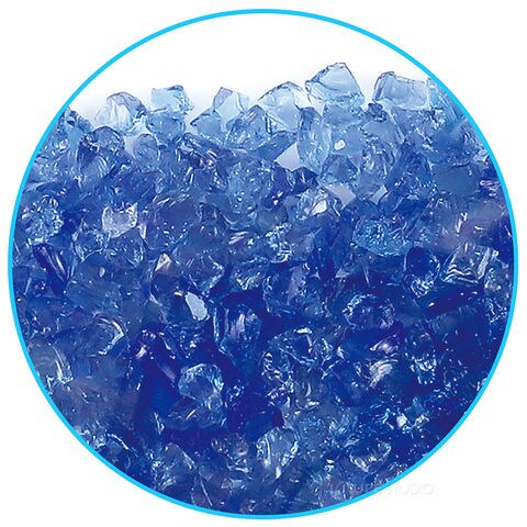 - 廃ガラスやあきびんなどを破砕プラントで砕いて粒状にした製品
