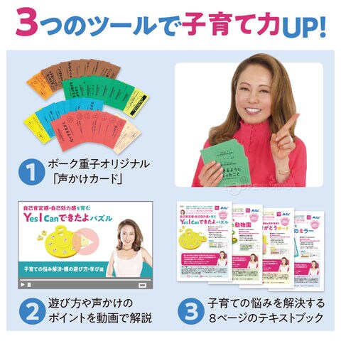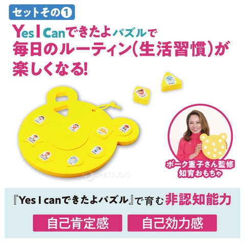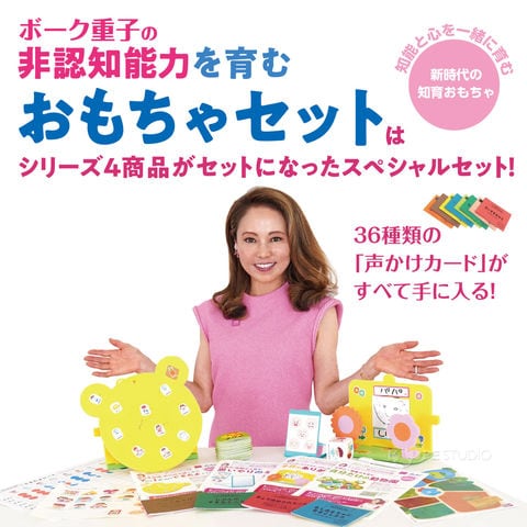 ボーク重子先生監修の「Yes I can できたよパズル」「自分だけの動物園」「今日のありがとうボード」「思いやりのミラー」の4商品すべてが入ったスペシャルセットです。