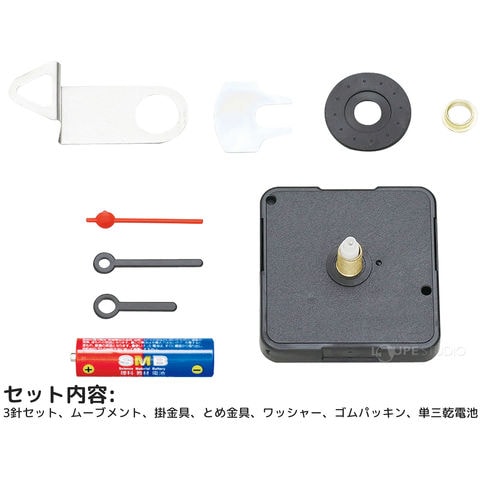 セット内容3針セット、ムーブメント、掛金具、とめ金具、ワッシャー、ゴムパッキン、単三乾電池