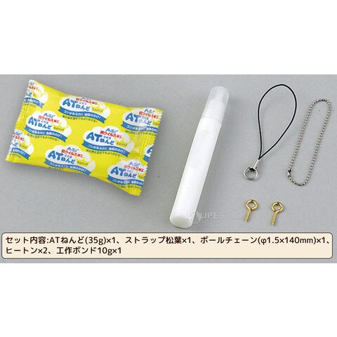 | セット内容 | ATねんど(35g)×1、ストラップ松葉×1、ボールチェーン(φ1.5×140mm)×1、ヒートン×2、工作ボンド10g×1 |