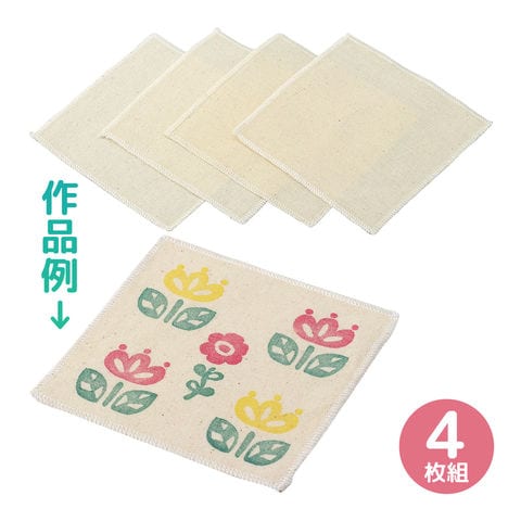 布製コースター 4枚組 工作 図工 材料 素材 パーツ 手作り コースター 小学生 夏休み 自由研究 宿題 学校 教材 子供 お絵かき ステンシル