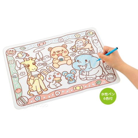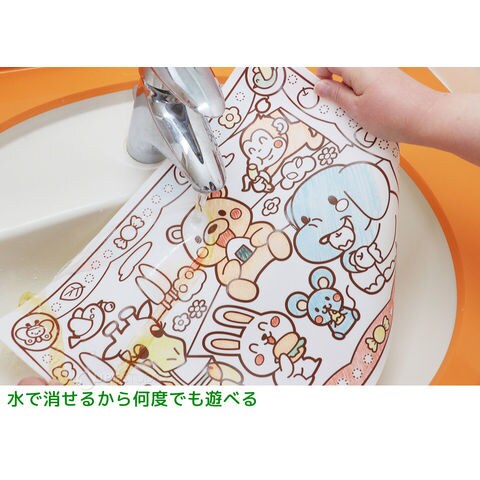 水で洗えば何回でも使えるシリコン製のぬりえシートです。