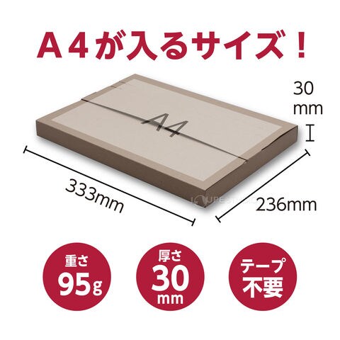 ダンボール ケース 箱 メール便対応薄型段ボールA4サイズ 1枚 クリックポスト ネコポス ゆうパケット メルカリ フリマ 梱包 荷物 333×236×29mmスペック