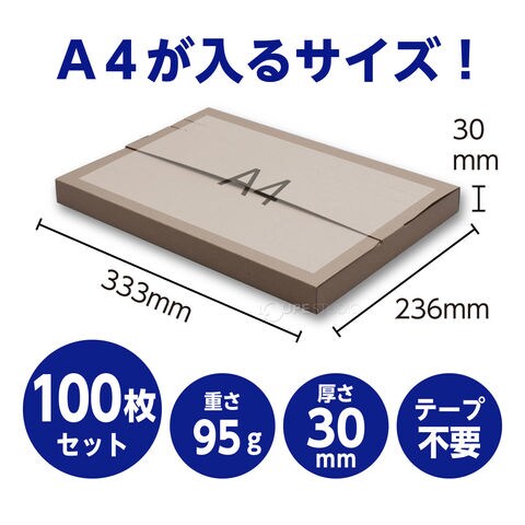 ダンボール ケース 箱 メール便対応薄型段ボール A4 100枚 クリックポスト ネコポス 3cm ゆうパケット 梱包 メルカリ フリマ 333×236×29mmスペック