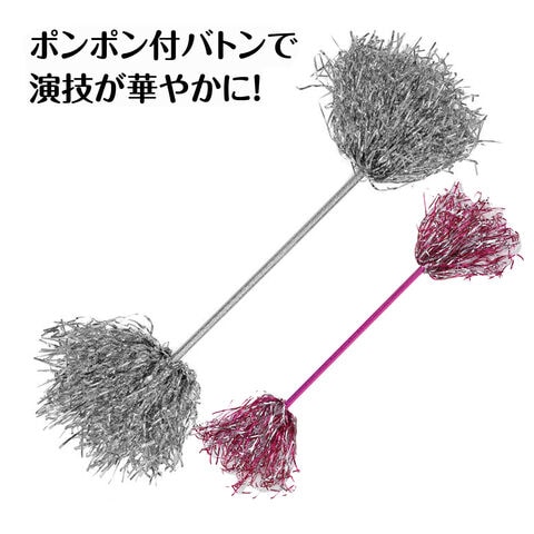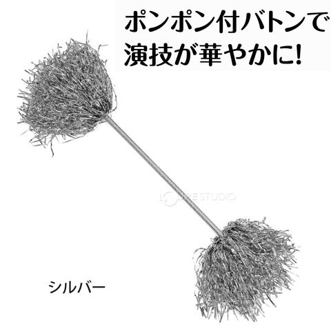 キラキラポンポンバトン シルバー ぽんぽん チアリーダー メッキテープ 運動会 体育祭 発表会 ダンス 小学生 キッズ 衣装 小物 コスチューム 応援 スペック
