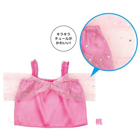 キラキラのチュールが付いたかわいいオフショルダーシャツです。
