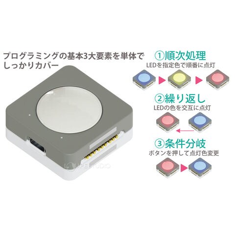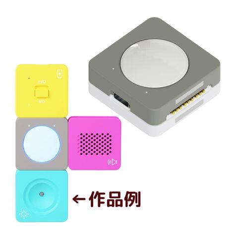 必要最小限の機能(ボタン、フルカラーLED、マイコン)を搭載した手のひらサイズのコンピュータです。