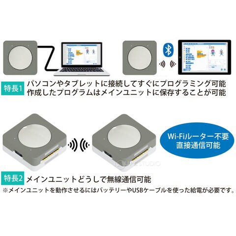 ※メインユニットを動作させるにはバッテリーやUSBケーブルを使った給電が必要です。