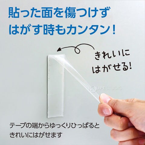 ※注意:こわれやすいもの、重量物、圧力がかかるものには使用しないでください。素材や条件によっては、接着面を痛めるおそれがあります。汚れが付着した状態では再利用できません。屋外での使用はお控えください。使用する気温によって、本製品はお使いいただけない場合があります。