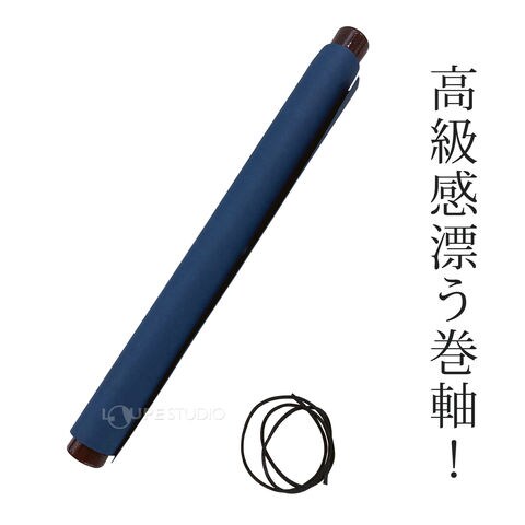 書初めなどに使われる三枚判の細長いサイズ用の巻軸です。紺色で高級感のある巻軸です。