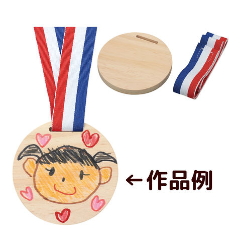 木製 メダル リボン付き 子供会 景品 お絵かき 手作り 工作 運動会 幼稚園 保育園 小学校 記念品 幼児 参加賞 ご褒美 木のおもちゃ