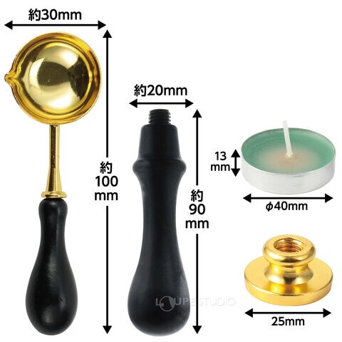 | 商品サイズ | ワックス/φ10×5mm、スプーン/約100×30mm、キャンドル/φ40×13mm、柄/約90×φ20mm、スタンプヘッド/φ25×15mm |
