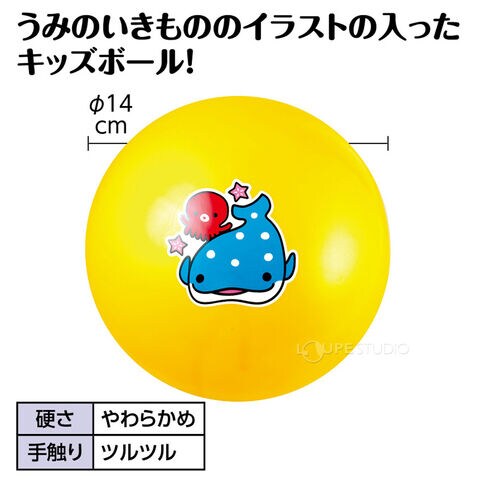 かわいいうみのいきもののイラストが描かれたやわらかめのキッズボールです。