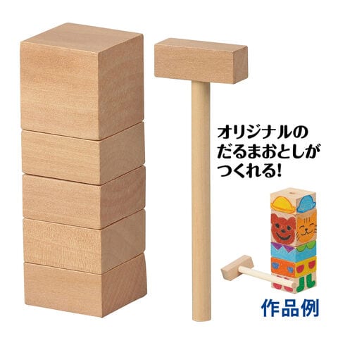 四角いので、平面でお絵かきしやすいだるまおとしです。無着色なので、オリジナルのだるまおとしがつくれます。創造性を育みつつ、昔ながらの遊びで楽しむことができる、家族や友だちとの時間にぴったりのアイテムです。
