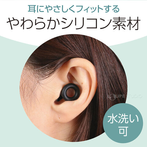- やわらかいシリコン素材が耳にやさしくフィットし、長時間の装着でも快適です。