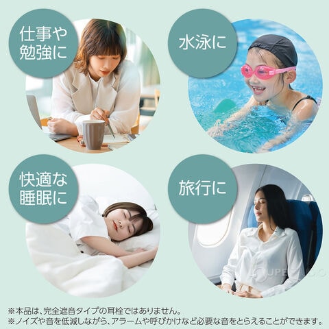- 仕事や勉強、快眠、旅行、さらには水泳時にも使用可能。
