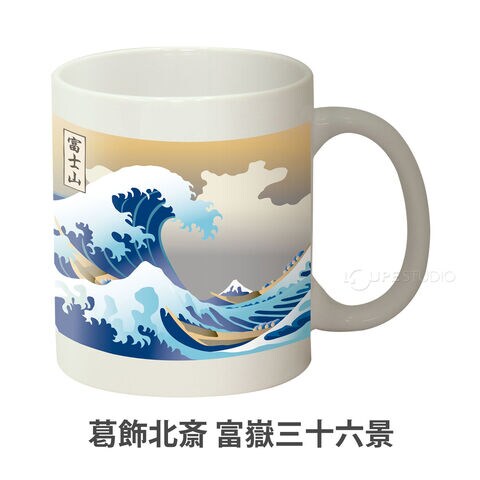海外で人気の葛飾北斎の浮世絵マグカップです。葛飾北斎の作品は、海外でも高く評価されています。富嶽三十六景デザインで、インバウンド向けの景品やお土産、海外への方のプレゼントなどにおすすめです。