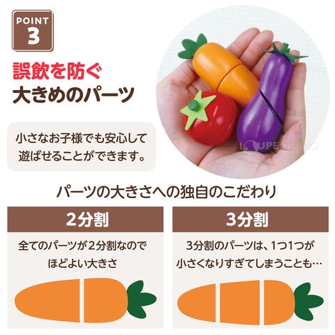 - ざくっと切る感覚が楽しい、かわいい野菜のおままごとセットです。