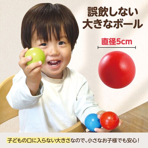 - 誤飲を防ぐ大きめのボールなので小さなお子さまにも安心。