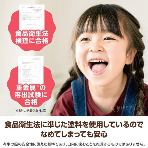食品衛生法に準じた塗料を使用しているのでなめてしまっても安心