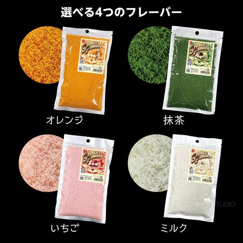 フェイクスイーツなどに使える便利なスポンジパウダーです。パフェのトッピングや、容器に入れてスポンジケーキにしたり、様々な使い方ができます。接着剤やレジンで固めることもできます。