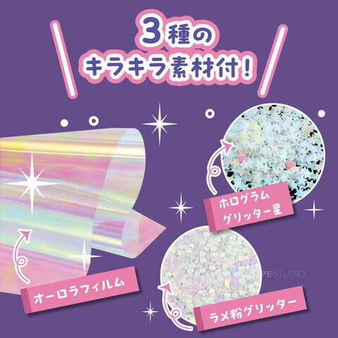 - ライトと3種類のキラキラ素材で、幻想的なペンライトが完成します。