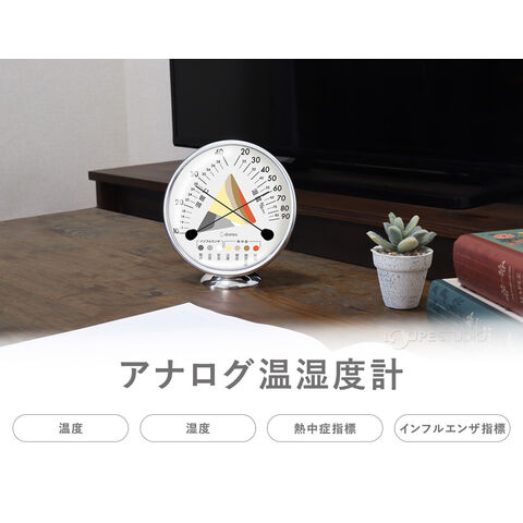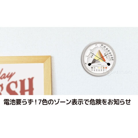 - 電池不要で手軽に使えるアナログ温湿度計です。