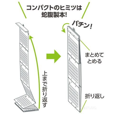 蛇腹製本でコンパクトなので、持ち運びにも便利です。