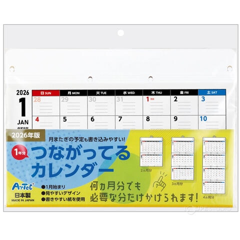 つながってるカレンダー 大 ジャバラ式 12ヵ月 1月始まり PPホルダー付 壁掛け 卓上 日本製 スケジュール管理 会社 予定表