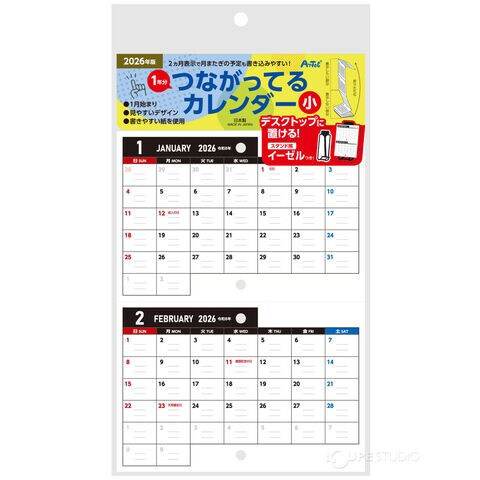 つながってるカレンダー 小 イーゼル付 12ヵ月 1月始まり ジャバラ式スペック
