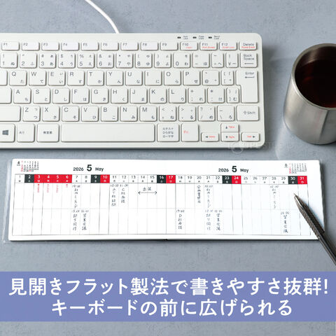 フラットスケジュールブック 見開きフラット 製本 2026年 携帯型 月間カレンダー 日本製 薄型 透明カバー付きスペック