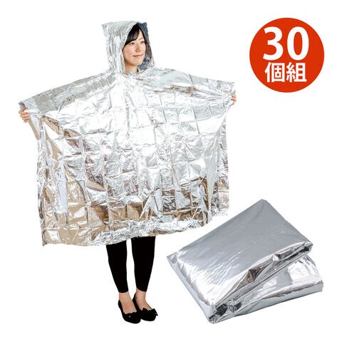防寒グッズ 子供 ポンチョ 非常用アルミ防寒ポンチョ 30個組 災害時 避難所 停電