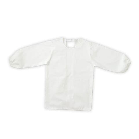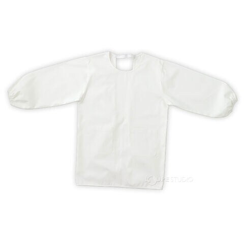 左右にポケットが付いた、使い勝手の良い割烹着タイプの給食エプロンです。