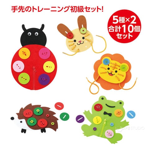 | セット内容 | へんしんアニマル(うさぎ)×2、へんしんアニマル(ライオン)×2、ボタンとファスナーあそび (てんとうむし)×2、ボタンあそび(はりねずみ)×2 |