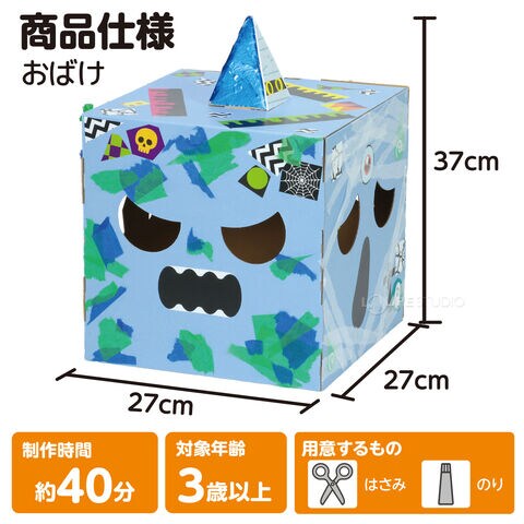 おばけ/完成サイズ/270×270×370mm、箱パーツサイズ/(600×300×2mm、610×330×2mm、630×330×2mm、145×115×2mm)、ホイル色紙/150×100mm、おはながみ/248×192mm、デザインシート/297×420mm