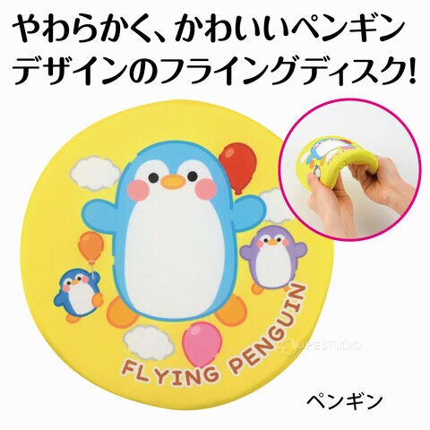 やわらかくて軽い素材を使用した、かわいいペンギンデザインのフライングディスクです。