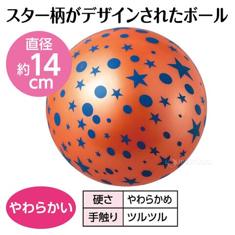 • スター柄×ビビッドオレンジで目立ちやすく、運動遊びにぴったりのボールです。