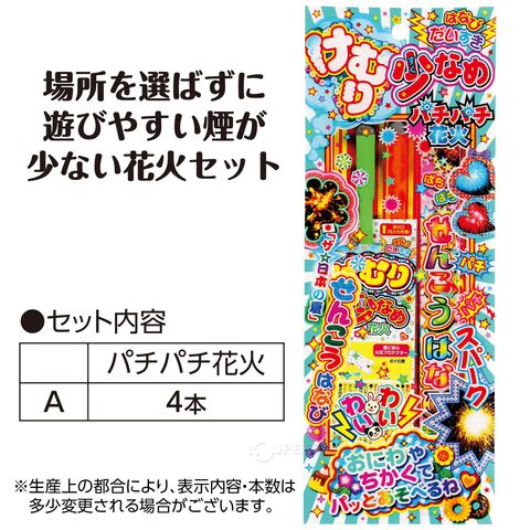 花火 手持ち花火 4本 けむり少なめ パチパチ花火 NO.100 少煙花火 環境配慮 静か 庭 公園 コンパクト花火スペック