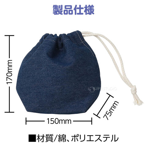 - 丈夫で軽量なデニム素材を使った巾着袋です。
