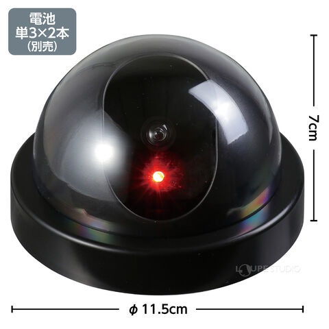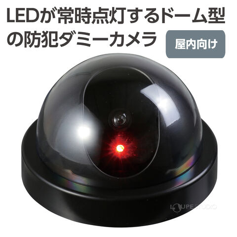 - 赤色LEDが約1秒間隔で点滅し、防犯意識を高めるドーム型ダミーカメラです。