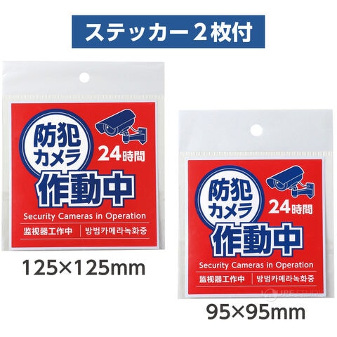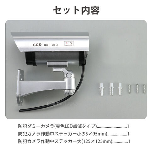 | セット内容 | 防犯ダミーカメラ(赤色LED点滅タイプ)×1、防犯カメラ作動中ステッカー小(95×95mm)×1、防犯カメラ作動中ステッカー大(125×125mm)×1 |
