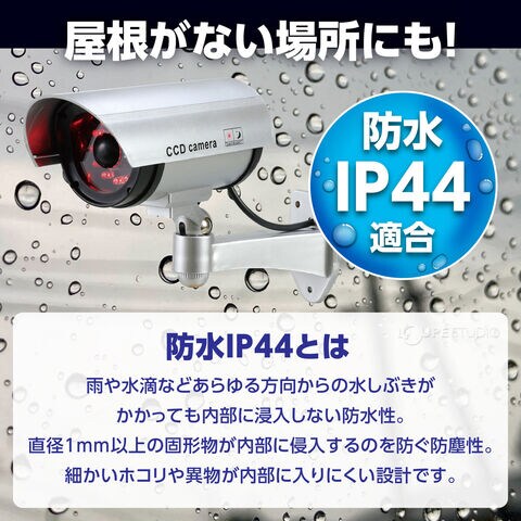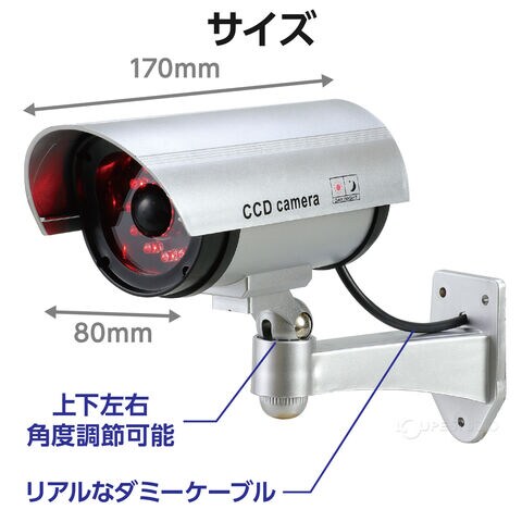 | 材質 | 防犯ダミーカメラ(人感センサーライトタイプ)/ABS、防犯カメラ作動中ステッカー/PVC |