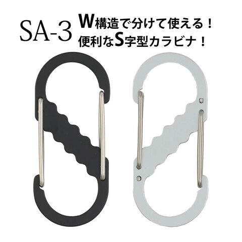 SA-3 Wフックカラビナ S字型 アルミ合金 ステンレス軽量 Wフック バッグ ベルトループ キー 小物整理 アウトドア キーホルダースペック