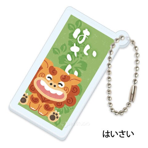 - かわいいシーサーと「はいさい」の文字が描かれた沖縄デザインのキーホルダーです。