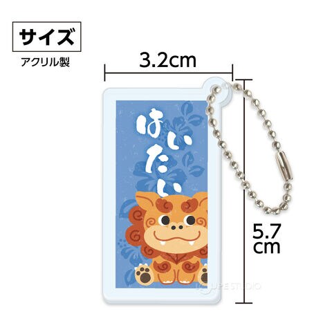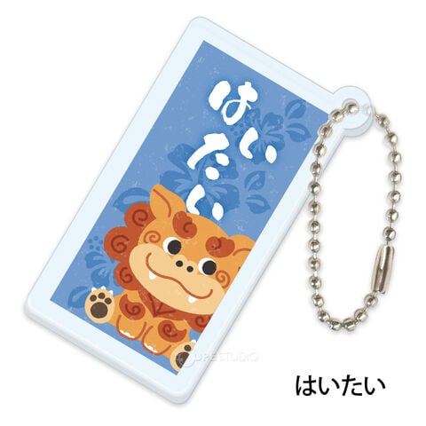 - かわいいシーサーと「はいたい」の文字が描かれた沖縄デザインのキーホルダーです。