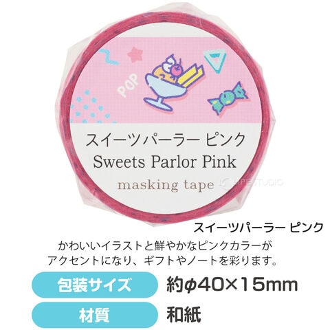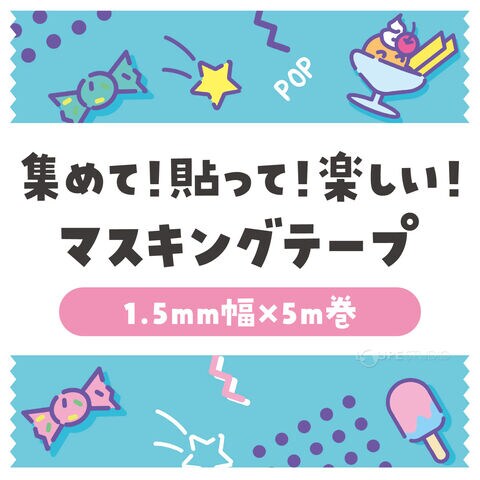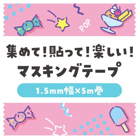 - あなたの好きを詰め込んで、ノスタルジックデコを楽しんで!キャンディやパフェなどのスイーツをデザインした、懐かしさと今っぽさが融合したレトロスイーツ柄のマスキングテープです。
