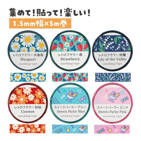 - 昭和レトロなポップカラーにときめく、ちょっぴり懐かしくてキュートなマスキングテープです。